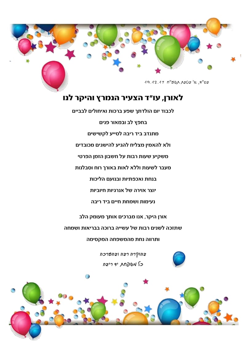 יד ריבהמחלקה משפטית רציתי לומר לך תודה רבה על הכל השרות המשפטי שהיה לדעתי מעל ומעבר,