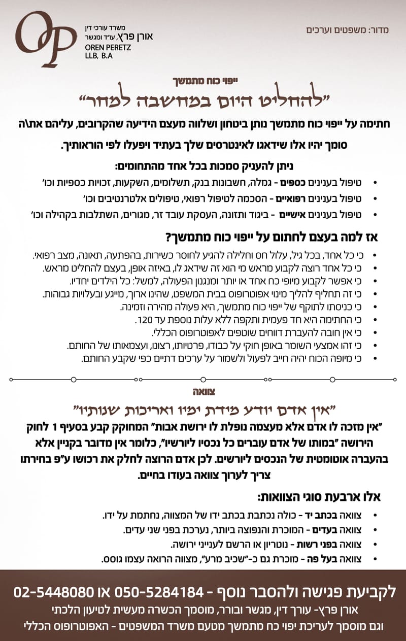 פרסום בעלוןיפוי כח מתמשך משפטים וערכים -צוואות"
